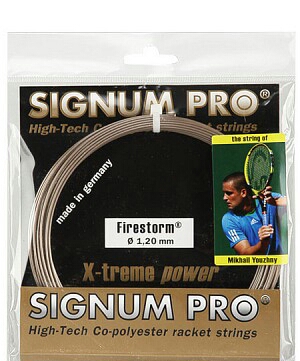 El Cordaje Signum Pro Firestorm está diseñado con una nueva estructura molecular mejorada para proporcionar más potencia, capacidad de juego y confort, todo ello minizando la pérdida de tensión. Además permite un buen control de la pelota, lo cual lo convierte en un cordaje perfecto para el jugador moderno de estilo agresivo.