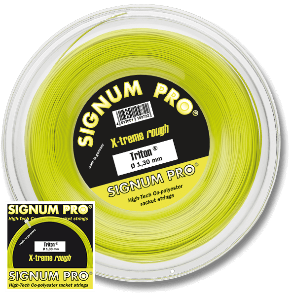 El Signum Pro Triton es un cordaje firme y duradero de copoliéster que permite que los jugadores más agresivos ejecuten golpes potentes sin miedo a traspasar las líneas. A los jugadores a los que les gusta golpear la pelota con efectos les encantará la superficie texturizada, que proporciona un buen agarre de la pelota, creando mayores efectos. Esta versión presenta el calibre más grueso de la línea Triton y es perfecto para aquellos que buscan más durabilidad y control direccional